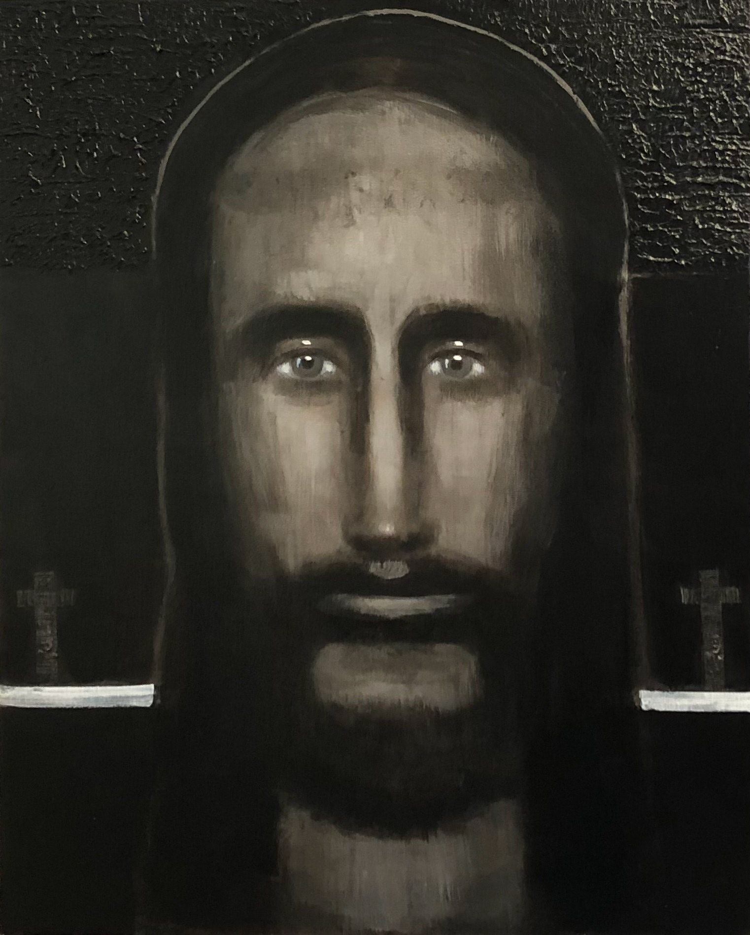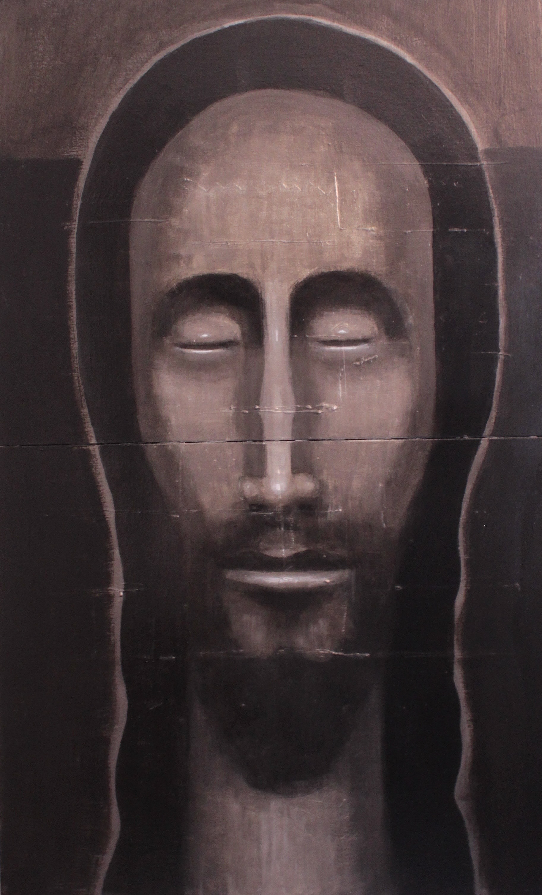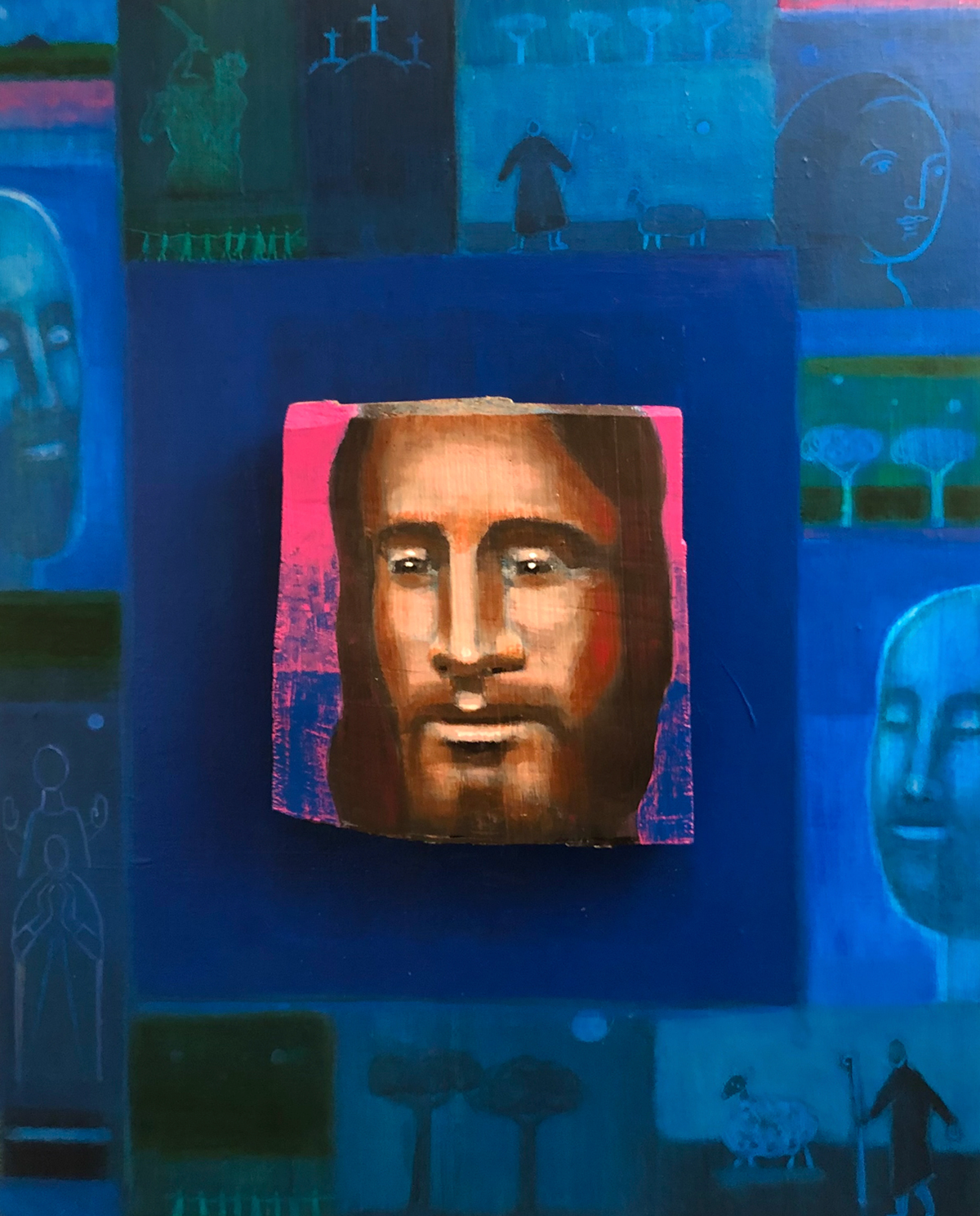 " Le Christ magenta " - Technique mixte sur toile et bois - 65 x 50 cm - 2024