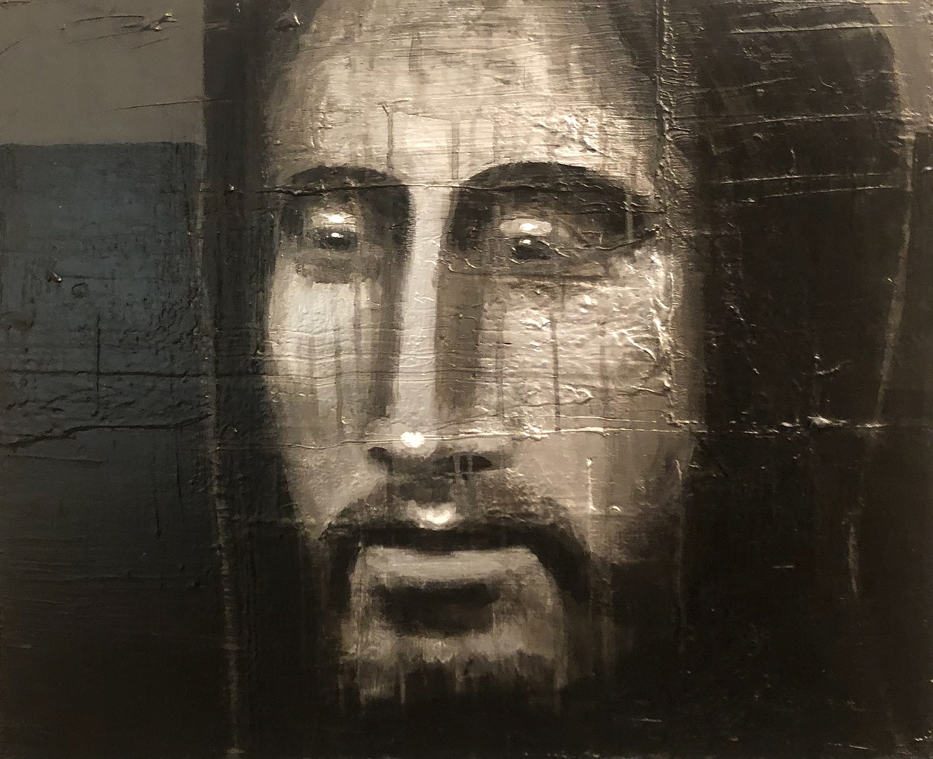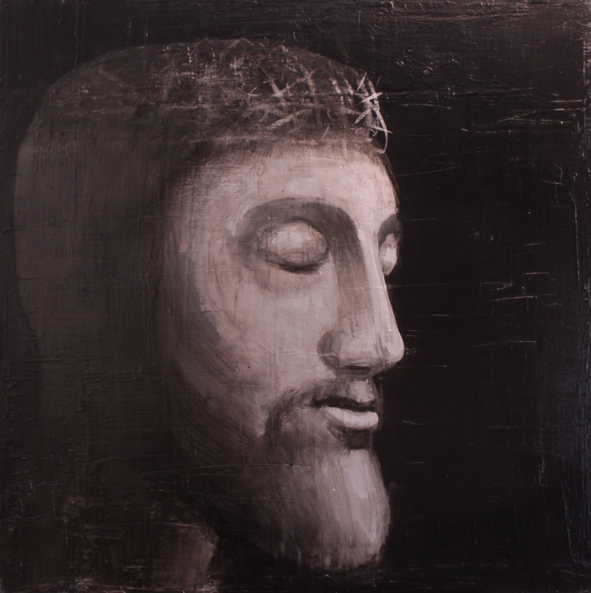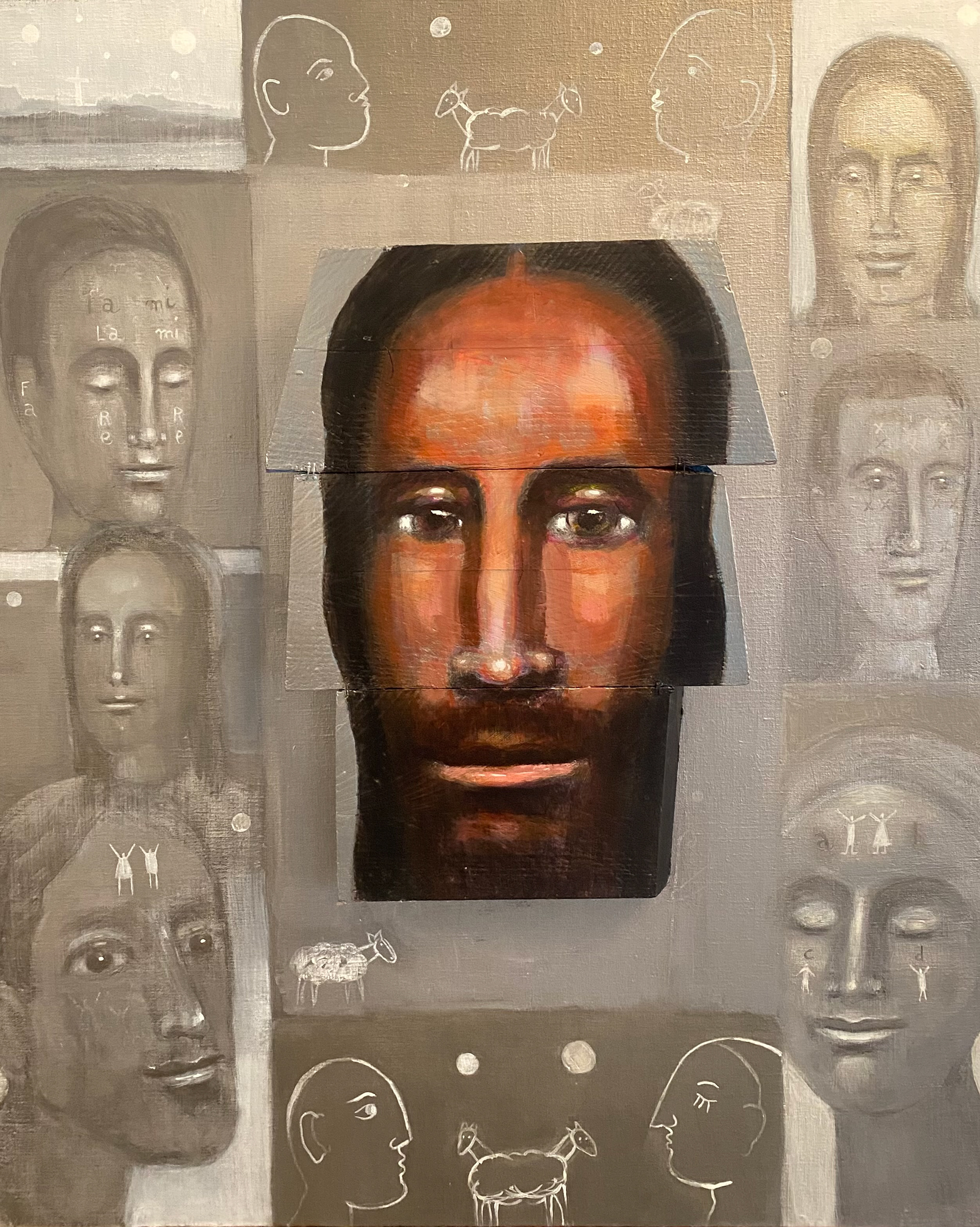 " Le Christ magenta " - Technique mixte sur toile et bois - 65 x 50 cm - 2024