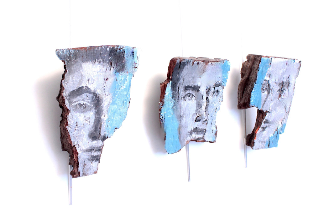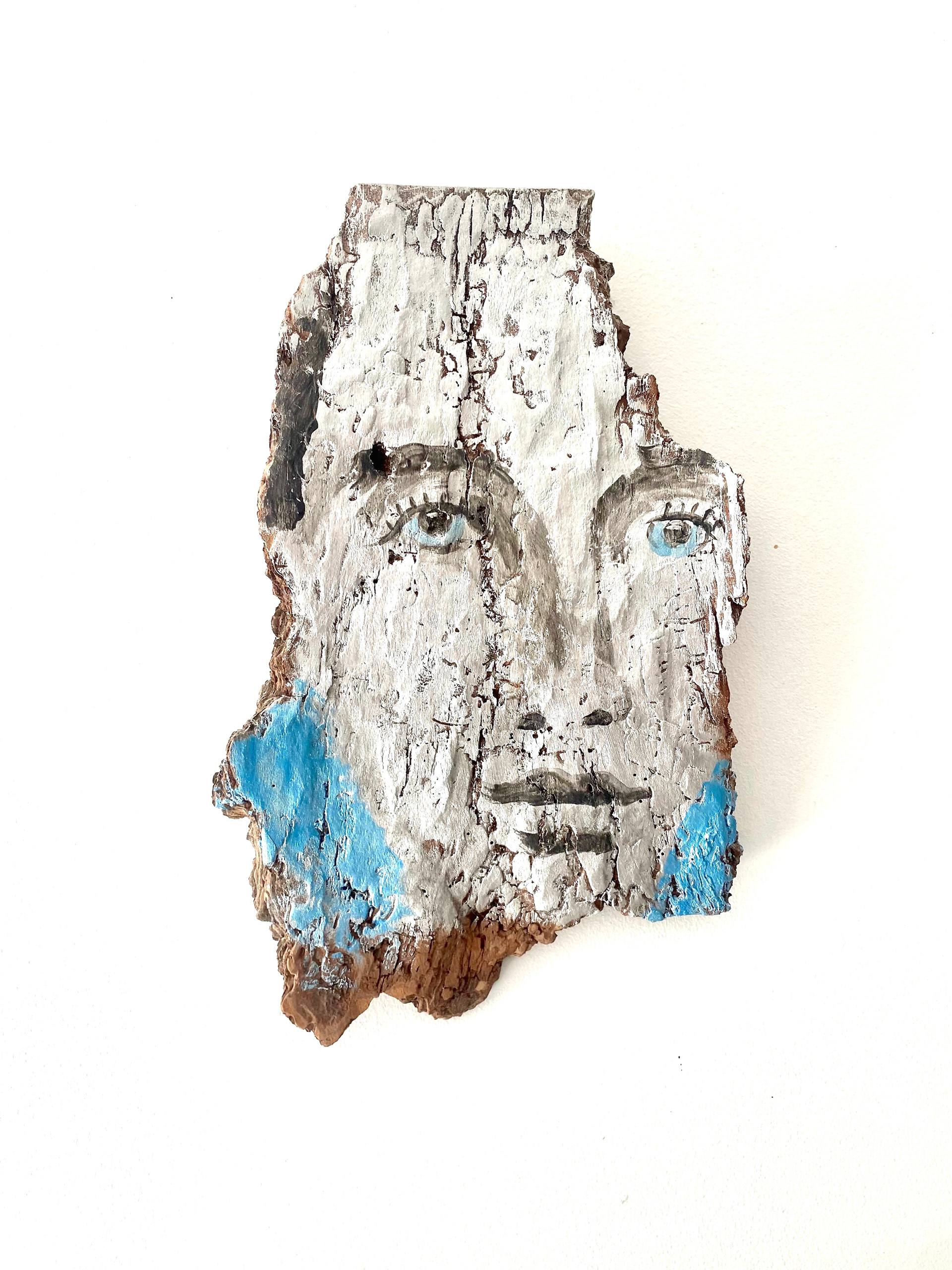 Une figure - Technique mixte sur écorce - 25 x 20 x 10 cm - Collection particulière